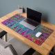 Diese Coole Schreibtischmatte bietet ein Trippy Sky Blue Abstrakt Retro Atomic Waves Design mit Magenta, Yellow, Aqua, Lila, Türkis und Roten Akzenten. Das Ergebnis ist ein buntes, trippiges, grooves, welliges marmoriertes abstraktes Design, dass Sie Liebe!