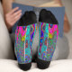 Diese Coolen, farbenfrohen Unisex Socken sind mit einem Trippy Sky Blue Abstrakt Retro Atomic Waves Design mit Magenta, Yellow, Aqua, Lila, Türkis und Roten Akzenten ausgestattet. Das Ergebnis ist ein buntes, trippiges, grooves, welliges marmoriertes abstraktes Design, dass Sie Liebe!