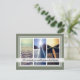 Triptych 3 Foto Collage Vorlage Winter Holiday Postkarten. Laden Sie Ihre eigenen drei Bilder hoch, um einzigartige Karten für Frohe Weihnachten und andere Anlässe zu erstellen. Fügen Sie Fotos von glücklichen Familien, Enkelkindern, Kindern, Freunden, Wiedersehen, Ansammlung, Mama und Papa, Großeltern, Ehemann und Ehefrau, Braut und Bräutigam, Urlaubsreisen, Büromitarbeiter, Hochzeiten usw. hinzu. Extravagante Randstreifen mit schönem, individuellem Hintergrund, Passe partout, dh olivgrün. Enthält ein transparentes Overlay für stylische Skripttypografie-Texte.
