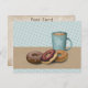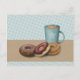 Une carte postale avec trois beignets succulents et un café chaud fait à partir de ma peinture numérique originale.