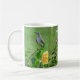 Trois photos de Mockingbirds se tenant sur un buisson d'Hibiscus à côté d'une fleur jaune, imprimées sur une variété de tasses.
