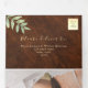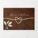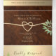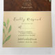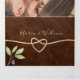 Élégante, moderne, invitation de mariage triptyque en bois rustique avec feuillage aquarelle, cœur en corde dorée simple et photo personnalisée du couple au dos.