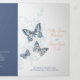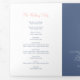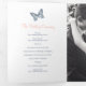 Programme de renouvellement de six pages pour les mariages ou de cérémonie de mariage. Modifiez ce programme de mariage avec vos propres noms, dates, introduction, libellé de cérémonie, accompagnateurs de mariage, une photo de votre premier événement ou mariage restreint, ou une photo de votre fiançailles, et ajoutez vos propres mots de remerciement au dos. Des produits de mariage et d'autres produits de couleur mariages et des options de couleurs assortis à la de papillons bleu foncé, bleu clair, rose corail, orange et crème sont disponibles. Art original et design de Sarah Trett pour www.mylittleedenweddings.com sur Zazzle.