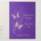 Un programme de cérémonie de renouvellement de six pages pour les mariages. Modifiez ce programme de mariage avec vos propres noms, dates, introduction, libellé de cérémonie, accompagnateurs de mariage, photo de votre premier événement ou mariage restreint, et vos remerciements. D'autres papillons violets et crème assortis ainsi que d'autres produits de mariage couleur sont disponibles. Art original et design de Sarah Trett pour www.mylittleedenweddings.com sur Zazzle.