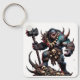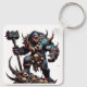 Ein Troll wie im Gloranthan RuneQuest, farbig, mit einer Halskette, die von Stoßzähnen gerahmt ist, und einem Lila mit Lila und Halskette, die dunkle Magie ausstrahlt. stehend auf einem Berg von Schädeln sowohl reptilianisch als auch menschlich. durch Martinspixs.