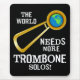 Die Welt braucht mehr Posaunentext mit dem Bild der Erde in der Glocke einer Posaune ist ein lustiges, niedriges Geschenkdesign für Hornmusiker, Schüler und Lehrer in Konzert, Jazz und Marching Band