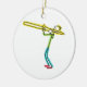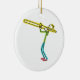 A fun cartoon drawing of a stick figure playing the trombone - complete with bold colors, exaggerated limbs, and musical energy. For fans of brass instruments, quirky art, and expressive minimalism. The design features a yellow trombone, red feet, and a green-blue body in full performance mode.