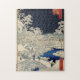 Hiroshige: Meguro taikobashi yūhinooka, 1857. Vintager Japanerdruck zeigt die Howsfußgänger, die eine Steinbrücke während eines Schneesturmes kreuzen. Farbholzschnitt durch Andō Hiroshige. Nr. 111 in der Reihe Meisho Yedo Hiakkei (hundert berühmte Ansichten von Edo), 1857.