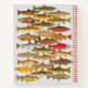 Über 40 Arten von Forellen, Char und Lachs aus den ursprünglichen Aquarellen von Thom Glace auf der Vorder- und Rückseite des Notebooks
