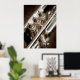 Ein flaches Tiefenbild der Ventile einer Trompete.
