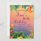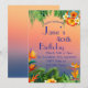 Feiern Sie stilvoll mit diesem atemberaubenden tropischen Einladungs-Design! Mit üppiger Vegetation, farbenfrohen tropischen Blume und einer faszinierenden Orange-Blau-Kulisse ist diese Einladung für jeden Anlass geeignet. Ob Geburtstagsfeier, Brautparty oder Veranstaltung mit tropischen Themen, dieses Design kann personalisiert sein, um Ihre Bedürfnisse zu Anzug. Beeindrucken Sie Ihren Gast & Set mit dieser Einladung für ein lebhaftes & festliches Fest.