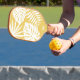 Dieses tropisch-gelbe Monogramm-Pickleball-Paddel zeichnet sich durch ein weißes tropisches Blattmuster auf einem gelben Hintergrund aus. Personalisieren Sie es mit einem modernen, einfachen Schriftart für Ihren Anfang.