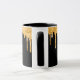 Eine mit Monogramm Tasse, mädchenhaft und trendig. Ein schicker schwarzer Hintergrund mit Imitaten goldenen Glitzer-Tropfen, Farbe Tropfausdruck. Personalisieren und fügen Sie einen Namen und einen Monogrammbuchstaben hinzu. Weiße und goldfarbene Buchstaben. Der Name wird mit einem modernen handgeschriebenen Stilskript mit Swashes geschrieben. Um die Swashes behalten, löschen Sie nur den Beispielnamen, verlass die Leerzeichen oder Emoji's vor und nach dem Namen.