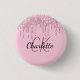 Ein rosa Hintergrund mit Imitaten Glitzer Tropfen, Farbe tropfend aussehen. Personalisieren und fügen Sie einen Namen, Ihre Monogramm-Initialen. Der Name wird mit einem handgeschriebenen Stilskript geschrieben. Perfekt als Gastgeschenke oder Namensschilder für Geburtstagsfeiern, Babyduschen, Brautpartys und Junggeselinnen-Abschiede.
