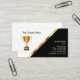 Trophy récompense les cartes de visite avec design moderne comprend une ligne élégante de design doré, l'image d'un trophée, et un design carte de visite simple qui vous permet de customiser le texte et de changer la couleur arrière - plan blanche si vous voulez. J'ai conçu ce modèle de carte de visite comme un style unique et élégant pour une boutique de trophées, des prix personnalisés ou des services de reconnaissance.