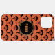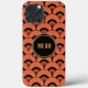Dieses iPhone-Gehäuse mit elegantem und stilvollem Gold mit orangefarbenem tropischem abstrakten Deko-Fächer mit geometrischer Decke, nahtlos auf schwarzem Hintergrund mit eigenem Text, um Ihre eigenen Initialen oder Monogramm zu setzen. Ideal für Frauen & Mädchen's oder jemand Besonderes, jede gelegentliche und Feiertagssaison mädchenhafte Geschenkideen, die tropisch geometrisch geschmolzenen Rand farbenfrohe Fanmuster mögen.