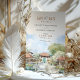 Mit dieser wunderschönen "Save the Date" Karte, die das ruhige AYANA Resort in Bali zeigt, können Sie Ihre Hochzeit im Paradies verkünden. Die Fassade ist im typisch balinesischen Stil gehalten, umgeben von üppiger Vegetation und tropischen Gärten, die alle in sanften Aquarellen mit aquamarinen Terrakotta-Farbtönen und sanften Grüntönen gehalten sind. Die Rückseite bietet einen ruhigen Ausblick auf die ruhige Landschaft von AYANA mit traditionellen Pavillons und aufwändigen Details und schafft so ein friedliches, tropisches Ambiente. Diese elegante Karte eignet sich perfekt für eine Hochzeit in Urlaubsort, die das Wesen von Balis Schönheit und Charme einfängt und die Gäste zu einem unvergesslichen Fest einlädt.