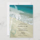 Erleben Sie eine Feier mit der natürlichen Tropical Beach Baby Shower Invitation. Dieses Thema Tropen-Thema massgeschneiderte Baby-Dusche laden ein Naturfoto des Wassers oder türkisblaue Ozean auf einem Sandstrand mit einer weißen Palme und Wirbel an der Ecke.