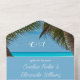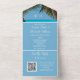 Tropical Beach, Ziel, elegante, moderne gefaltete Ehe, QR-Code Hochzeit alle in einer Einladung. Das dreifache, budgetäre Set. Sie können es mit Ihren eigenen Daten personalisiert.
