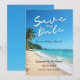 Entdecken Sie das Paradies mit diesen "Save the Date"-Tropenkarten, die eine sonnige tropische Strandlandschaft mit Palmen und Meereswellen beherbergen. Ideal für eine Hochzeit in Urlaubsort, kann dieses Design mit Ihren Namen, Hochzeitstag und Ort personalisiert werden. Eine wunderschöne Art, Ihren Gästen lassen, ihre Kalender zu markieren und sich auf Ihre unvergessliche Feier am Meer vorzubereiten.