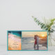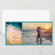 Ankündigen Sie Ihre lässige und dennoch elegante aufstrebende Insel inspio Ziel Heirat Zeremonie und Empfang mit der hübschen Tropical Beach Wedding Save the Date Foto Card. Diese maßgeschneiderte Tropenhochzeit behalte die Datumsanzeige Fotokarte mit einem landschaftlichen Naturfoto des türkisfarbenen oder aqua-blauen Ozeans an einem weißen Sandstrand mit Palmen und aquamarinem wirbelfarbenem Design.