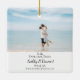 Set den Ton und verkünden Sie Ihre Insel Ziel Heirat Zeremonie und Empfang mit dem Tropical Beach Wedding Save the Date Keramik Ornament. Dieses Thema Tropen-Theme maßgeschneiderte Hochzeit am Strand behielt das Datum Keepake-Ornament zeigt ein Naturfoto des türkisfarbenen oder aqua-blauen Ozeans auf einem weißen Sandstrand mit einer Palme und aquamarine wirbelnde Gestaltung an der Ecke. Passen Sie es mit dem Heiratsort und dem persönlichen Foto an. Der Sangria-Filter wurde hinzugefügt. Bitte entfernen oder ersetzen Sie es, um Ihre individuellen Bedürfnisse Anzug.