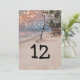 Vintage Tischnummern in der Hochzeit in Urlaubsort mit romantischen Sonnenuntergang, tropischen Stranden mit üppigen Palmen, Lichtern aus Streichholz und einer leicht zu personalisierenden Tischnummer.