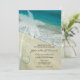 Invités Invitations à célébrer la mariée et à se préparer le matin après leur cérémonie de mariage avec la jolie invitation Brunch Mariage Tropical Beach Post. Cet élégant thème personnalisé de tropiques After Mariage Breakfast or Luncheon Invitation présente une photographie de la nature de l'océan turquoise et plage de sable avec un palmier blanc et des tourbillons ornant le coin. Idéal pour un thème de fête de destination île.