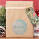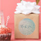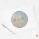 Hochzeit am Strand danke Ihnen Aufkleber. Wasser am Ufer, mit "Dankeschön"-Formulierung im modernen Script-Schriftart. Rundaufkleber sind in zwei Größen erhältlich und können auf der Rückseite von Umschlägen angebracht oder auf die Greifverpackung gelegt werden.
