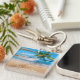 Schlüsselanhänger mit einem Foto von einer schönen tropischen Strandlandschaft gezeigt. Akryllischer Schlüsselanhänger Passen Sie dieses Objekt an oder kaufen Sie, wie es ist.