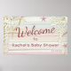 Das Tropical Beach Seashell Modern Boho Baby Shower Chic Modern Poster Banner mit hübschem Stranddesign in Pastellfarben mit Muscheln und dem Text "Welcome" in eleganter rosa Kalligraphie Schrift Typografie. Ideal für die Babydusche Party Dekoration. Von Evco Studio entworfen www.zazzle.com/store/evcostudio