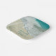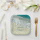 Personalize the pretty Tropical Beach Wedding Paper Disposable Plates for use at your island destination marriage reception or bridal shower beach party. These custom tropics theme disposable plates feature a nature photograph of an aqua blue turquoise ocean with waves breaking on a sand beach with a white palm tree and teal swirls adorning the corner.