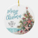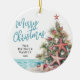 Feiern Sie die Saison mit diesem festlichen und Strand rund um Weihnachten-Ornament, perfekt für einen Urlaub an der Küste. Das Design umfasst einen skurrilen Weihnachtsbaum aus Strandfischen, Seestern und Korallen, mit einer Mischung aus Grün, Bräune und einem Orangenrot-Pop an der Spitze, der Ihnen eine lustige tropische Drehung in Ihre Urlaubsstimmung bringt. Das untere Ende des Designs zeigt sanften Sand und sanfte aquamarine blaue Ozeanwellen und schafft so eine entspannte Küstenlandschaft. "Frohe Weihnachten" erscheint oben in einem Mix aus blauen und schwarzen Schriftart, wobei eine fröhliche Mischung aus Schrift und Serifentypografie verwendet wird. Ihr Familienname oder benutzerdefinierter Text wird unter dem Baumstamm angezeigt, mit Platz zum Hinzufügen eines Jahres für eine persönliche Touch. Das gleiche Design ist auf beiden Seiten bedruckt, was es zu einem charmanten Sake aus jedem Winkel macht. Alle Texte, Schriftart und Farben können individuell angepasst werden. Eine tolle Ergänzung zu Ihrem Strandbaum oder ein nachdenkliches Geschenk für jeden, der einen warmen Urlaub bei Lieben macht.