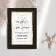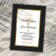 Mit dieser eleganten Einladung mit modernem Drehbuch, schwarzem und goldenem Text, inklusive einer künstlerischen Palme und metallischem Rahmen aus Gold, laden Sie Ihre Gäste ein, Ihren besonderen Tag zu feiern. Ein schwarzer Hintergrund ist vorne und hinten.