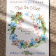 Announce your tropical elopement ceremony with a blue, green, and brown hibiscus wreath. Beautiful blue hibiscus flowers, light green banana leaves are beautiful with blue and turquoise sea turtle border. Brown and green monstera leaf compliments the light blue floral arrangement. A beautiful match for malibu blue or Bahama blue wedding invitation color palettes.