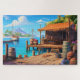 Entfliehen Sie einer tropischen Dockszene mit diesem pulsierenden Puzzle. Helles blaues Wasser, eine rustikale Anlegestelle, und die ganze Entspannung eines Strandtages - ohne den Sand in Ihren Schuhen. Ideal für Ozeanliebhaber und diejenigen, die eine friedliche Flucht gewollt haben, ohne das Sofa verlassen. Teil der Kollektion Sunset Shores & Ocean Adventures - Karo mehr Ruhe entdeckt in das Küstenparadies!