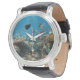 Uhr, Vintage Männeruhr mit schwarzem Lederarmband