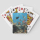 It's party time under the sea. Busy and chaotic underwater scene of tropical black and white striped fish mixing it up with the goldfish.