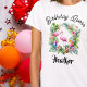 Tropischer Flamingo Geburtstag Königin T - Shirt für Frauen. Rosa Flamingo, umgeben von tropischen Blume, und auch tropische Getränke sind im Design enthalten. Ananas-Bild ist perfekt für Party-Villen. Personalisiert. Kombination von menschlicher und neuartiger KI-Kunst.