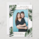 Dieses klassische Tropenpalmenfest verlasse Hochzeiten, das Datum wird durch ein neutrales Beige auf der Rückseite der Karte gesichert.