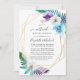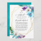 Türkisfarbene und lila tropische Blätter online virtuelle Hochzeitszeremonie mit goldenem geometrischem Rahmen und eleganter Typografie.