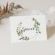 Dieses tropische Grün Blätter Spanische Hochzeit danke Ihnen Karte ist perfekt für eine einfache Hochzeit. Das Design besticht durch handbemalte grüne Blätter, die einen goldenen geometrischen Rahmen schmücken.