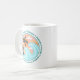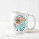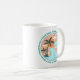 Einfache Tasse mit klassischem Strandaussehen, Kaffee oder Tee mit farbenfroher Retro-Illustration von grünen Palmen, blauen Wellen, Orangensonne, gelben und rosa Sonnenstrahlen. Umgeben von Wörtern, die sich auf die Sommerzeit beziehen.. Waves, Beach Party, Good Vibes, Cocktails, Sommer, Freunde, Lachen, Sonne und Surfen. Coole Becher für die Grillen Strand oder Hinterhof Party und auf Lager in Ihrem Patio oder Pool Ti Bar.