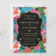 Celebrate your love with this vibrant wedding invitation featuring a lush tropical border of hibiscus and exotic florals in pink, orange, blue, and green. Set against a rich dark blue background, the black ornate frame with gold trim adds elegance and contrast. Perfect for destination weddings, botanical ceremonies, or any event that blends bold color with timeless romance.