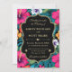 Invite guests to paradise with this vibrant wedding invitation featuring a black ornate frame trimmed in gold, surrounded by lush hibiscus florals in pink, purple, yellow, and red. The rich tropical palette and elegant typography evoke romance and celebration—perfect for garden weddings, destination ceremonies, or any event that blends bold beauty with timeless charm.