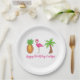 Tropical Island Palm Tree Ananas Pink Flamingo Pappteller