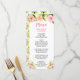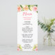 This beautiful and elegant wedding menu features watercolor pink and orange hibiscus flowers and foliage. The text combines handwritten script and serif fonts for a stylish and modern look. This is perfect for a summer tropical wedding.