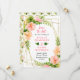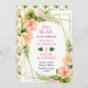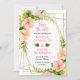 This fun and whimsical save the date invitation features watercolor pink and orange hibiscus flowers, monstera leaves and foliage on a gold geometric frame. The text combines handwritten script and serif fonts for a stylish and modern look. This is perfect for a spring or summer rustic wedding.