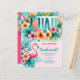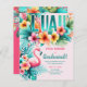 Fun Abschluss Thema Tropical Luau, Pool, Strand, themed Party Einladung für Mädchen mit trendigen Farben heiß rosa und aquamarin. Und Karo aus dem Flamingo!