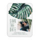 Tropical Wedding Save the Date Magnet for Your Fridge with a Modern Retro Monstera Tropical Leaf Design that's perfekt for a chic tropical beach or island destination wedding! Featuring a huge Monstera leaf with a really fun, bold and modern design with retro beach town style and your foto and destination wedding location.